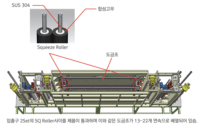 수평 • 수직 동도금 라인에 따라 다양한 배치 조건 및 도금조 수량 조절 가능 (13 ~ 22개 연속 배열 지원)