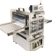 기존의 클린머신은 일정량의 기판을 세정 후 클린롤 상부의 Adhesive Tape를 수동으로 뜯어내는 방식으로 생산성 및 품질이 저하되는 단점이 있으나, Auto Clean Machine은 기판 및 Sheet 표면에 붙어 있는 미세 이물을 일정속도로 회전하는 SCR(Spon Clean Roller)로 제거하고 DCR(Dust Capture Roller)에 붙은 이물을 ACF(Auto Cleaning Film)로 자동 제거하는 장치입니다.