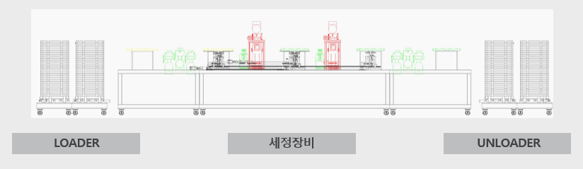 CCL 적재용 Box는 외부와 내부 표면에 먼지, 섬유, 포장잔여물 등의 이물이 부착되는 경우가 많으며, 클린 환경 으로 이송되기 전 세정 공정이 필수적입니다. 본 장비는 세정기 내부 좌우 측면에 배치된 고속 회전식 Tornado 에어 노즐을 통해 강력한 와류 형태의 공기를 분사하여, Box 외부 및 테두리 부착 이물을 효과적으로 제거합니 다. 분사된 이물은 장비 상부 및 하부에 설치된 이물 흡입 유닛에 의해 실시간으로 포집되며, 외부 비산 없이 안정 적인 작업 환경이 유지됩니다