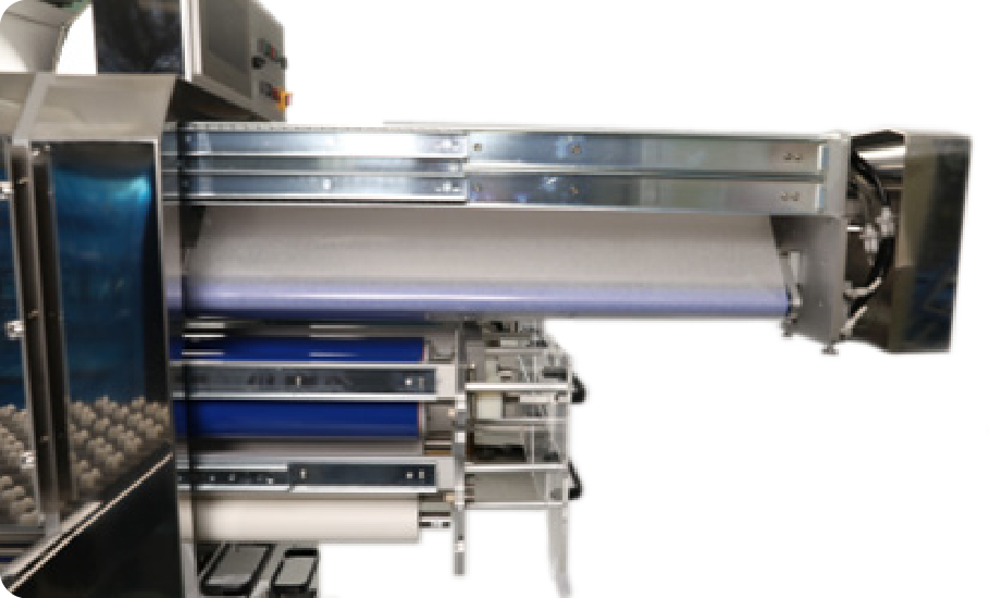 기존의 클린머신은 일정량의 기판을 세정 후 클린롤 상부의 Adhesive Tape를 수동으로 뜯어내는 방식으로 생산성 및 품질이 저하되는 단점이 있으나, Auto Clean Machine은 기판 및 Sheet 표면에 붙어 있는 미세 이물을 일정속도로 회전하는 SCR(Spon Clean Roller)로 제거하고 DCR(Dust Capture Roller)에 붙은 이물을 ACF(Auto Cleaning Film)로 자동 제거하는 장치입니다.